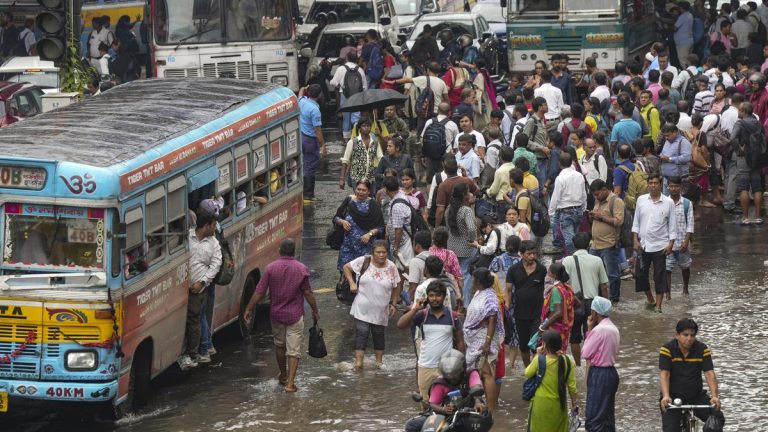 मंगलवार को कोलकाता और उसके आसपास के इलाकों में रात भर हुई भारी बारिश से जनजीवन अस्त-व्यस्त हो गया, कई जगहों पर घुटनों तक पानी भर गया और यातायात ठप हो गया।